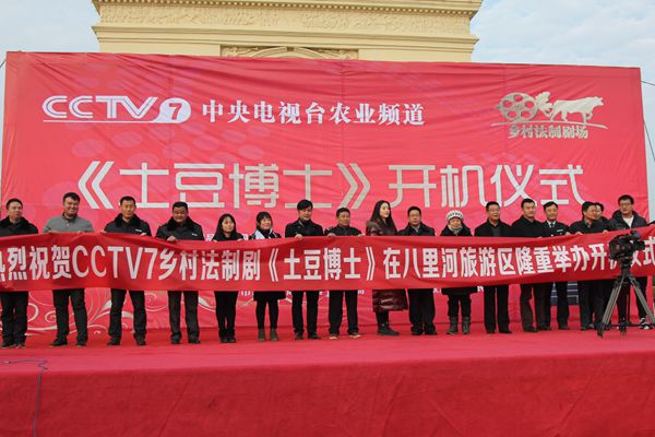 隨后導(dǎo)演劉子楠對《土豆博士》和CCTV-7《鄉(xiāng)村法制劇場》欄目進(jìn)行了相關(guān)推介及說明。竇燦輝與安徽華頌農(nóng)業(yè)科技有限公司負(fù)責(zé)人吳陶共同為《土豆博士》故事劇開機(jī)揭幕。